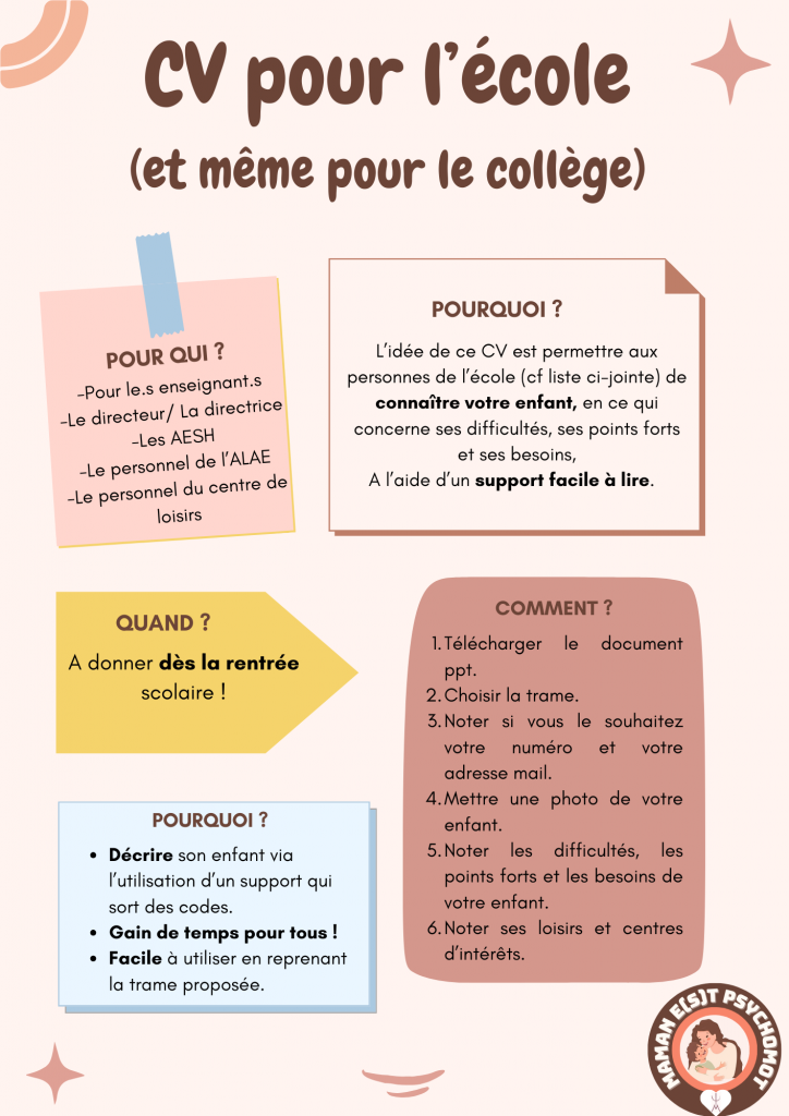 Un plus : Le CV de votre enfant pour facilité l'integration de votre enfant à l'école.